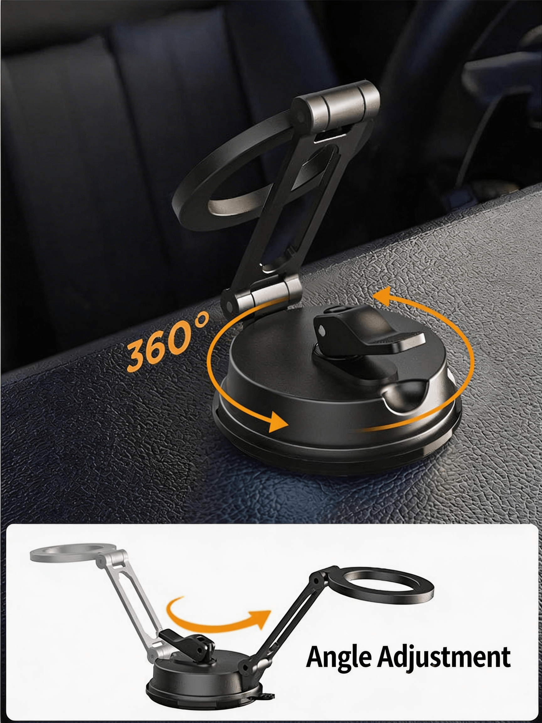 - Industrial-Strength Suction: Features an upgraded gel suction cup that creates a vacuum seal on dashboards, windshields, or office desks. It stays put even on bumpy roads and leaves no residue upon removal.
