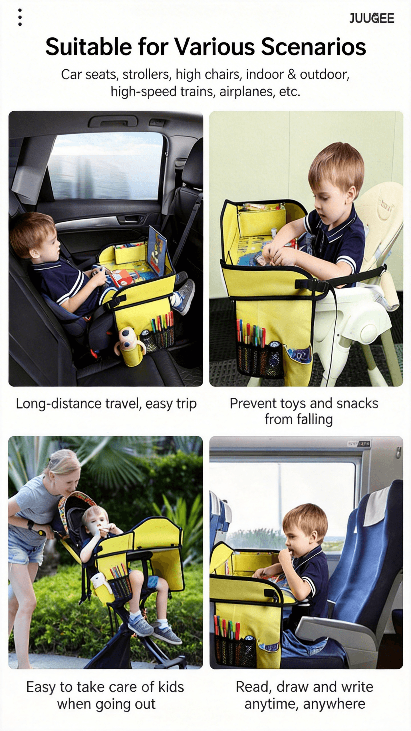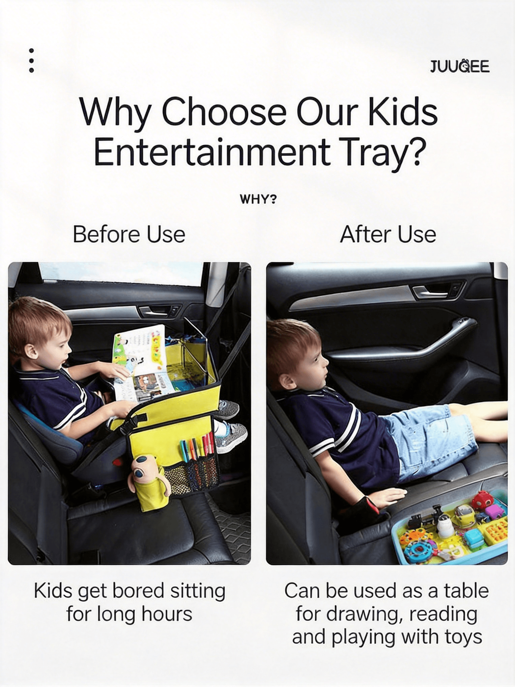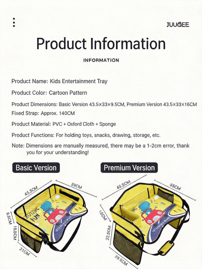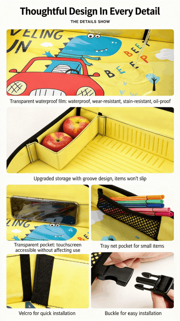 Turn the backseat into your child’s personal activity center. This portable travel tray is designed to keep toddlers entertained and organized on the go. Whether it’s snack time, art hour, or movie time, the spacious, waterproof surface handles it all. Simply wipe it clean when the fun is over—no stress, no mess.