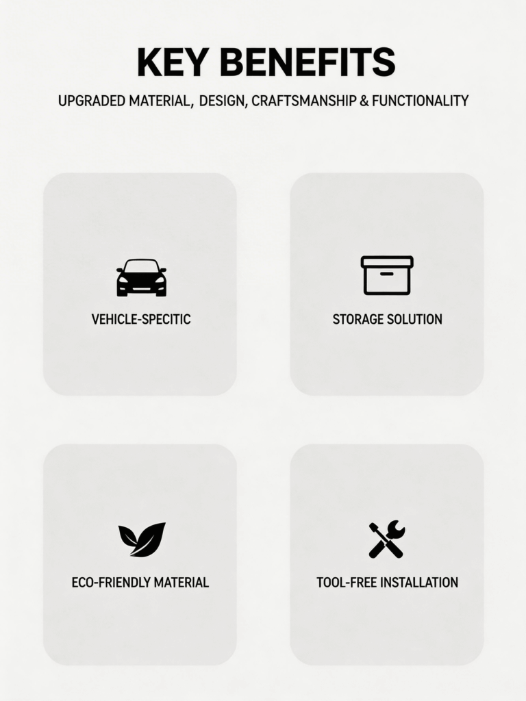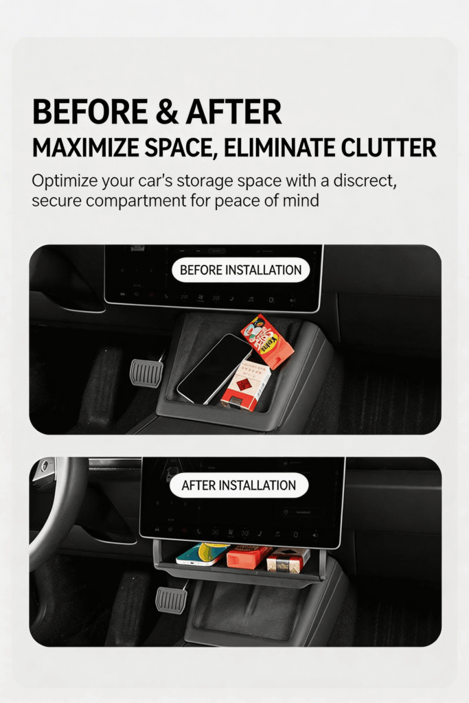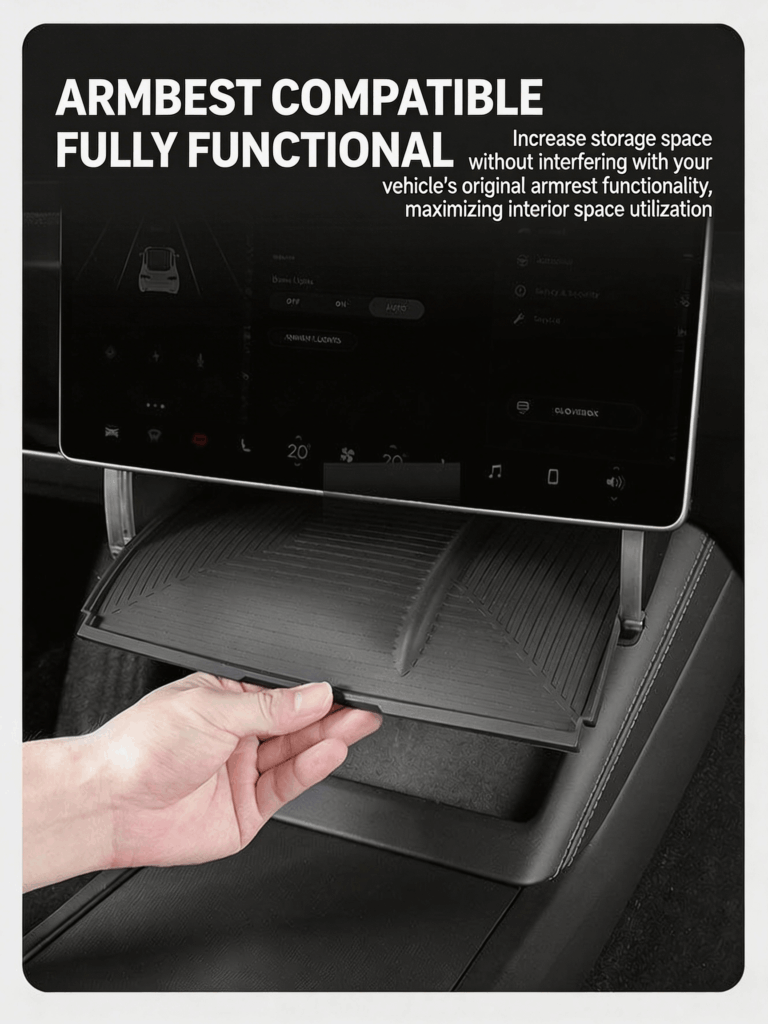 - Rattle-Free Design: No more annoying noises while driving. The box features soft silicone pads or felt lining to prevent vibrations and scratches, ensuring a quiet and premium ride.