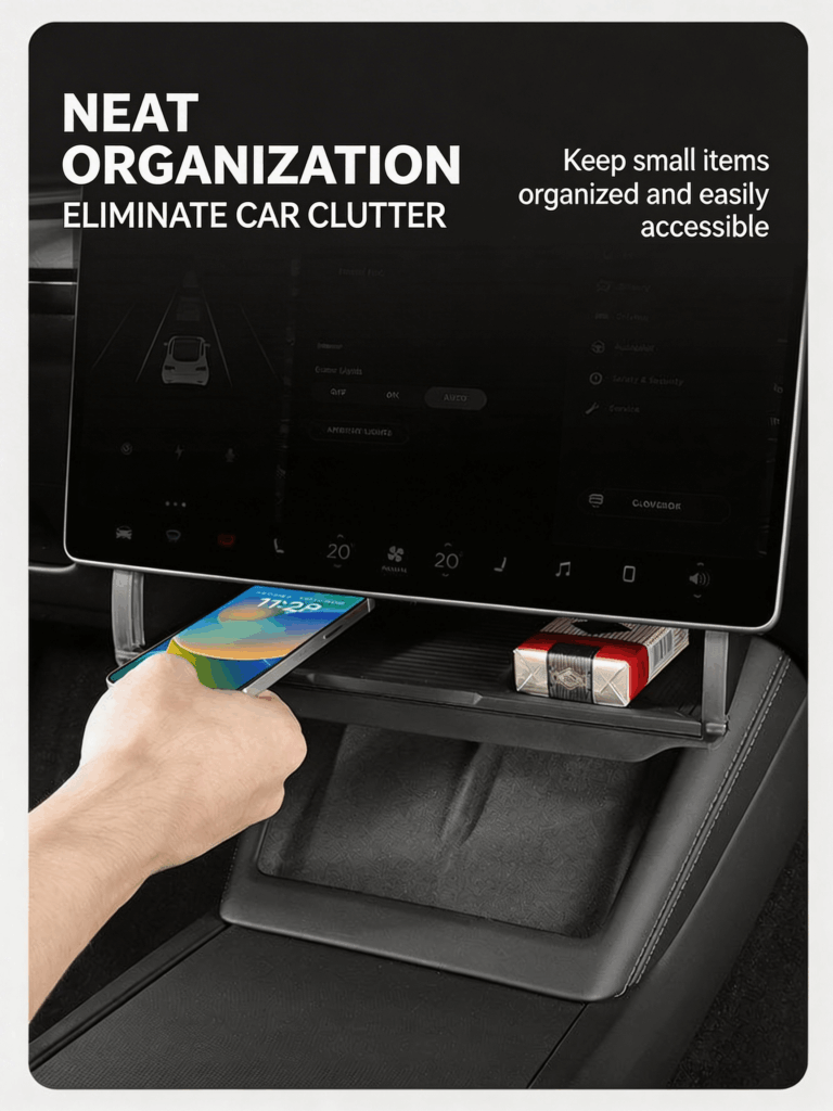 - Maximize Your Space: Turn that wasted space under the screen into a functional “catch-all” zone. Perfect for your phone, wallet, sunglasses, or even a pack of tissues.